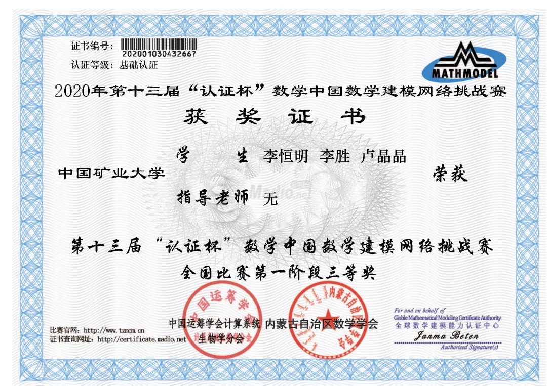 李恒明从失败中汲取教训,之后的时间里,李恒明和队友们一起努力学习数学建模知识,细心研究MATLAB如何使用。功夫不负有心人,在下一次的数学建模竞赛中,他们有了深厚的知识储备,处理问题也比较得心应手,在李恒明同队友的共同努力下,最终,他们取得了全国二等奖的好成绩。