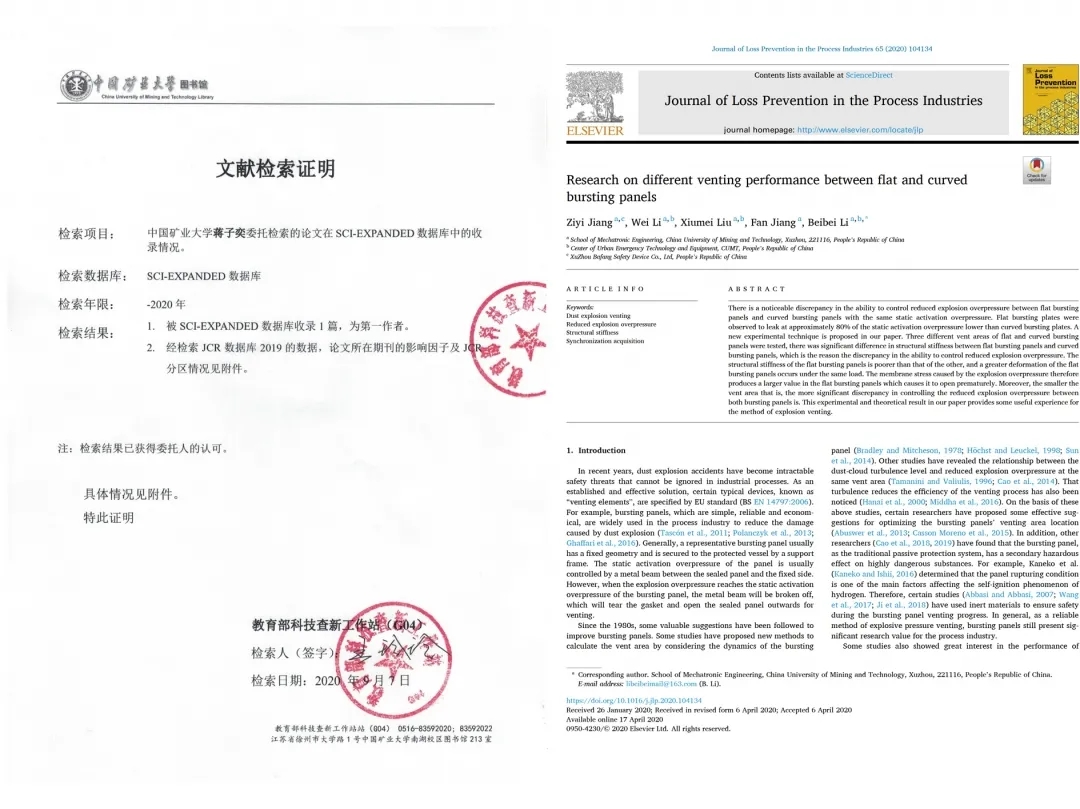 蒋子奕在许多刊物中发表了自己的论文,他的第一篇论文做的是压力容器的特种设备,是一个非常小众的方向,小众到甚至连审稿人都难以找到,而刊物也会因此拒绝稿件的发布,虽然刚开始蒋子奕很沮丧,但是他始终坚守着当初选择读研时的初心,蒋子奕选择了不气馁,一遍一遍地去尝试,寻找对于这个项目来说比较好的刊物,主动出击。好消息也随着不懈的坚持到来了,他的论文在疫情期间获得了在一区sci发表的机会。
