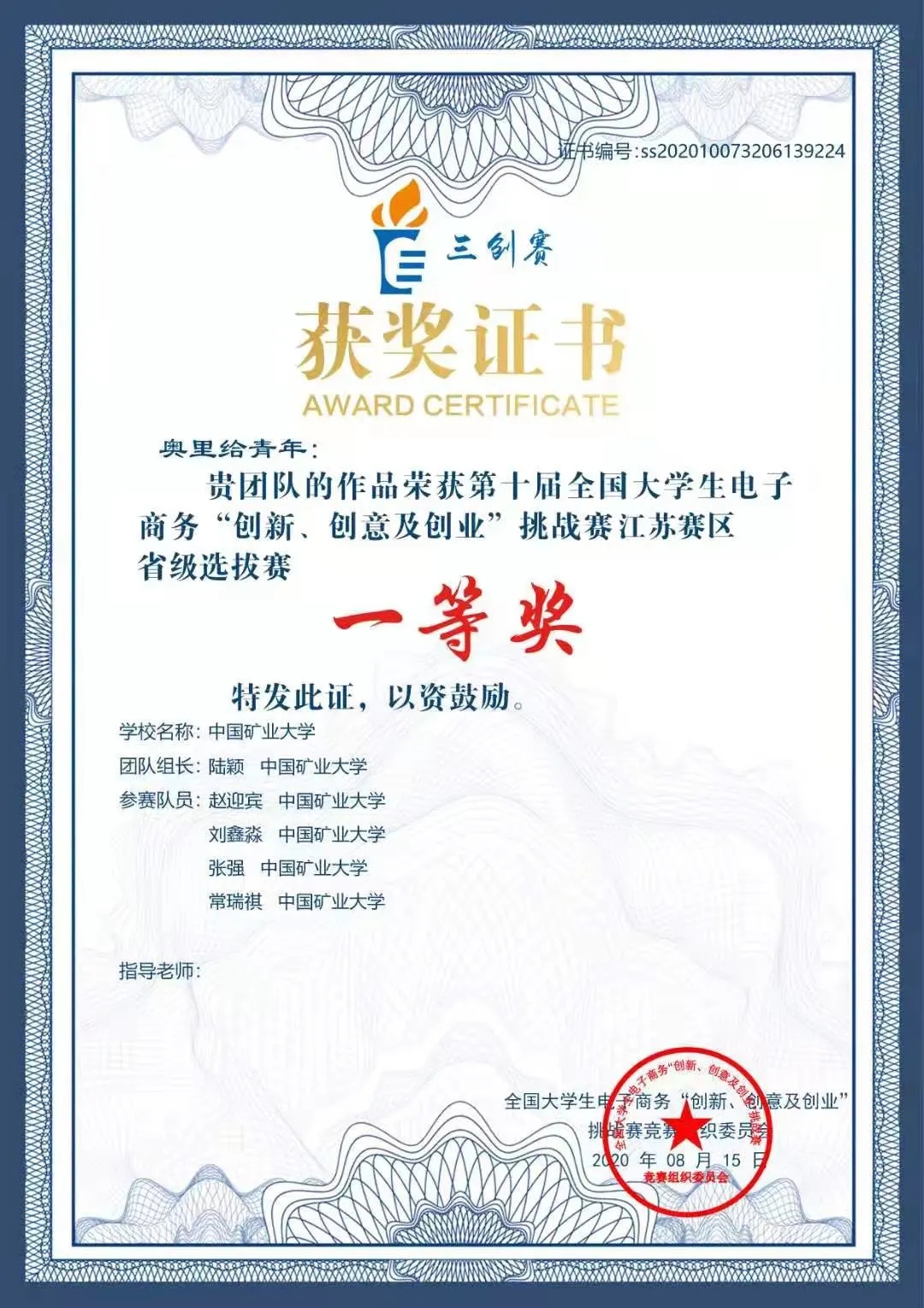 ◇第十届全国大学生电子商务“创新、创意及创业”挑战赛省级赛一等奖