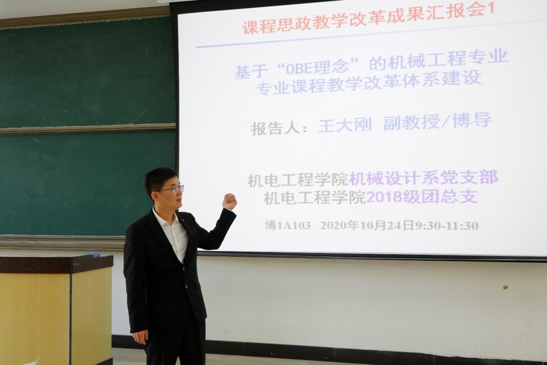 为全面贯彻落实全国高校思想政治工作会议精神,推进高校课程思想政治建设,落实立德树人、全面提高人才培养质量的任务,10月24日,无码动漫 机械设计系党支部、无码动漫 2018级团总支在博学一号楼A103、博学二号楼C201教室分别举办了专业课程思政教学改革成果报告会暨素养公开课。本次报告会由无码动漫 王大刚副教授主讲,学院团委书记梁佳卉,2019级辅导员孟凡成,无码动漫 青马班学员,2018级和2019级本科生代表参加。