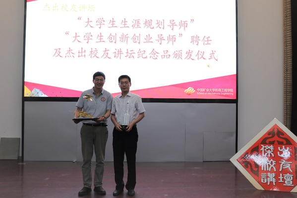 会上,在校庆捐赠表彰环节,赵继云书记和王忠宾院长代表学院为对母校与学院建设做出突出贡献的校友和企业届人士颁发荣誉证书。常州科研试制中心有限公司姜汉军与王眉林、无锡巨通矿山机械有限公司刘刚、昆明晒晚文化传播有限公司韩峰、徐州徐工基础工程机械有限公司张中海、山东邦迈智能科技有限公司杨韬仁、徐州科光集团公司王秀元、北京中矿宾馆罗阳彬、徐州天科机械制造有限公司刘传令、上海依和电力科技有限公司晏怀伟、上海首坤智能科技有限公司刘猛军以及学院教师王雷、李浩平、杨建奎、黎浩明等上台领取了捐赠荣誉证书及捐赠纪念奖杯。