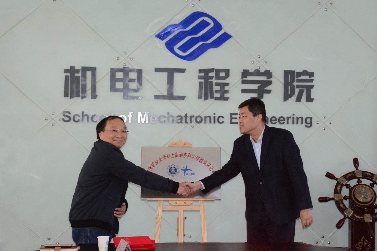 无码动漫 副校长周国庆与上海硅步科学仪器有限公司总经理常峰为共建机器人实验室揭牌