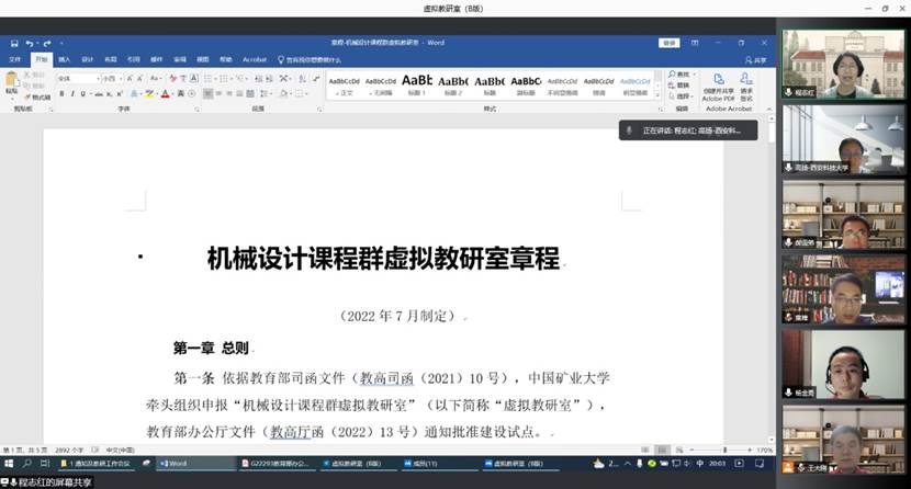 7月6日晚,教育部第二批虚拟教研室“机械设计课程群虚拟教研室”第一次工作会议——“机械设计课程群虚拟教研室主任会议”线上正式召开。