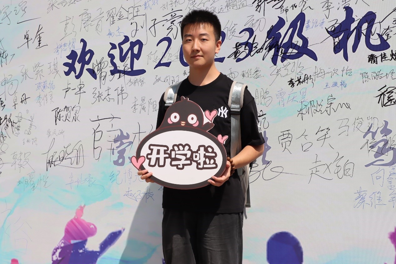 新生在签名墙前打卡
