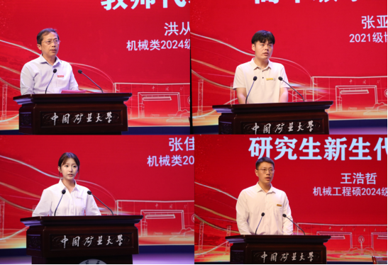 教师代表、老生代表、2024级本科生代表、2024级硕士生代表发言