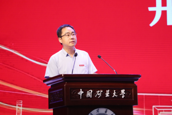 开学典礼在庄严的国歌声中拉开序幕。王忠宾院长致辞,他代表学院党政和全体师生对2024级新生的到来致以热烈的祝贺和诚挚的欢迎,并向辛勤陪伴、悉心指导同学们成人成才的父母表示亲切的问候和衷心的感谢!王忠宾院长介绍了学校的办学发展历程和学院发展历程、师资力量、学科及专业特色、科研成果、人才培养、国际合作交流等情况。他勉励新生及早适应“矿大人”这个新身份带来的变化,确立自己的奋斗目标,在勇敢地尝试和不懈追求中激发自己的潜能,实现个人价值,并向全体新生提出三点希望和要求:一是要立鸿鹄志,做不负青春的“担当者”。要坚定信念,志存高远,将个人的志向与国家的前途发展紧密的结合在一起,为民族复兴和社会进步毅然担当起属于矿大机电人的责任;二是要勤思善学,做踔厉奋发的“奋斗者”。要建立广博的知识储备,善于透过现象看到事物的本质规律,以求知若渴的“空杯心态”,刻苦钻研,潜心致学,不懈奋斗,拓展学习的视野,延伸认知的边界;三是要知行合一,做履践致远的“有为者”。牢记“崇德尚能,笃学践行” 院训,勇于到更广阔的天地、更复杂的环境中去,去研究现实矛盾,实践胸中所学,在一次次摸爬滚打中褪去稚气,在一次次迎难而上中增添勇气,在一次次爬坡过坎中沉淀底气。