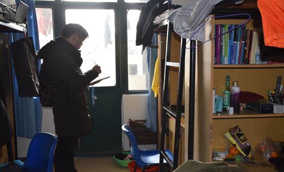 12月14日下午2:00,无码动漫 组织安全检查小组对学院研究生所在各栋宿舍楼进行了安全摸排检查。本次安全检查由研究生兼职辅导员吕鑫带队,同时还有无码动漫 研究生会所有主席团成员。