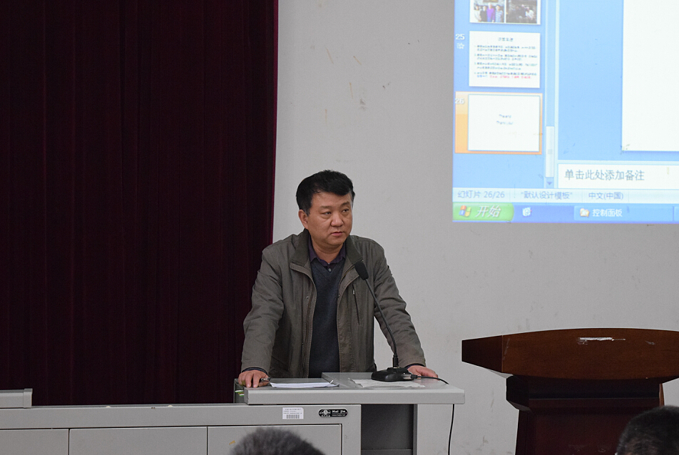 紧接着进行汇报的是青年教师鲍久胜,鲍老师主要从两个方面进行了汇报,一是鲍老师在华盛顿大学一年的访学经历,包括他的所见所闻所想所感;二是他的研究领域——制动器摩擦学研究。鲍老师指出:要热爱祖国!要爱护环境!要珍爱身体!最后鲍老师与大家分享了一句话“Scientific researching is endless! Enjoy it!”。