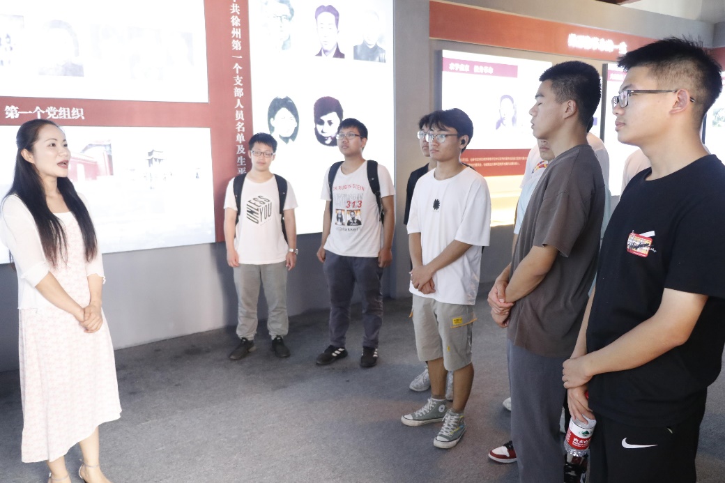 实践团成员抵达永康社区后,跟随着讲解员了解参观吴亚鲁先辈的革命事迹。成员们参观了展出照片、模型、油画及场景复原等含有历史渊源的展品,进一步了解了中国革命走向伟大胜利的历史进程。有电子屏幕在播放革命时期的历史资料、重要团体及革命老战士活动的录像。讲解员介绍道:“吴亚鲁在徐州虽然只有两年的时间,但历史为他写下了浓重的一笔:徐州地区和豫东、皖北邻县的革命运动的重要的引路人、播种人。”实践团成员通过听讲解、看图片、观实物,了解那段艰苦而伟大的岁月并从吴亚鲁烈士的革命历程中体验感悟党员不怕牺牲、担当使命、宁死不屈的斗争精神。