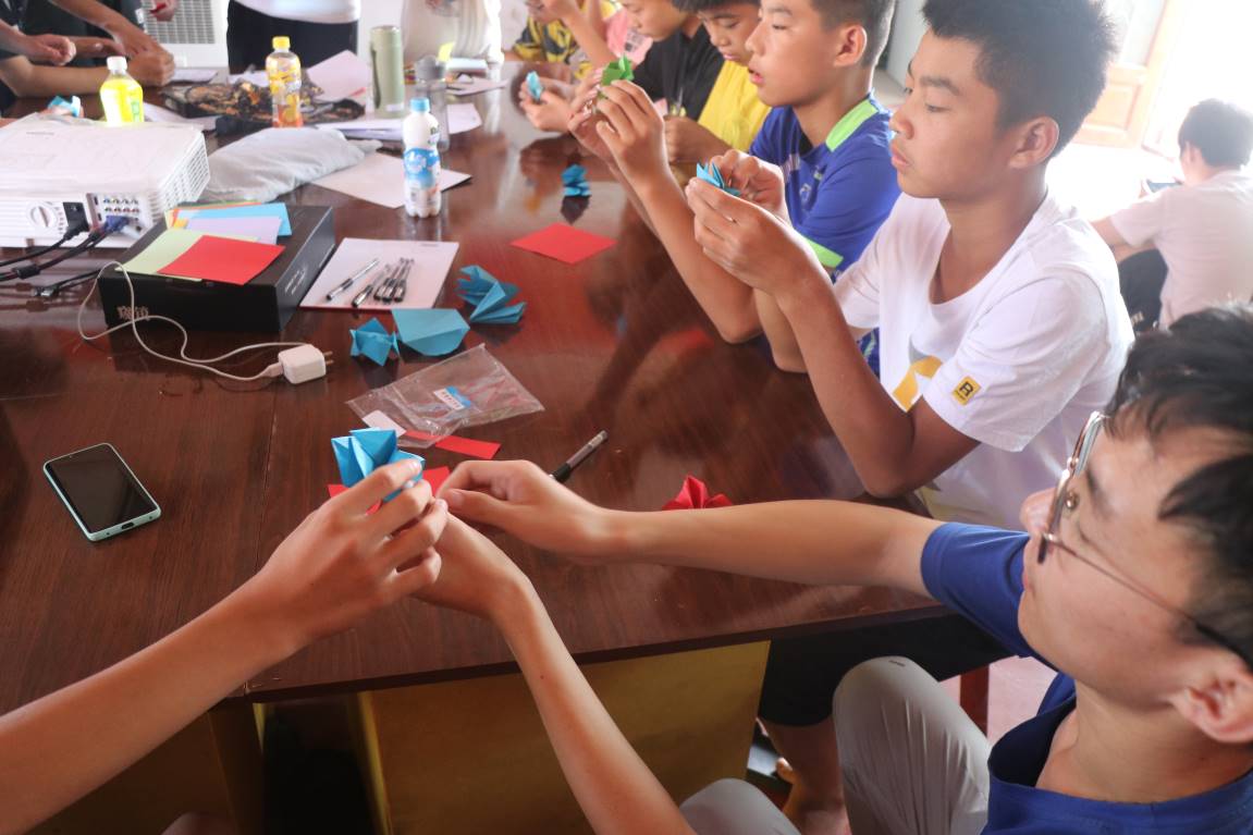 第二节课上,“青”心支教团折纸工艺课的志愿者老师为孩子们准备了有趣的折纸艺术课。首先,折纸老师和孩子们一起欣赏了国内外优秀的折纸艺术作品,并用视频的形式展现折纸艺术的魅力,接着,折纸老师带领大家一起学习折一朵小花。在折纸过程中,折纸老师手把手教授孩子们折小花的具体步骤。在此过程中,孩子们学习的不亦乐乎,并积极向折纸老师请教。最后,折纸老师向孩子们展示了千纸鹤,青蛙,乌龟,兔子,蝴蝶结等多种折纸手工工艺品,不仅锻炼了孩子们的动手能力,还增进了孩子与支教团成员的感情。