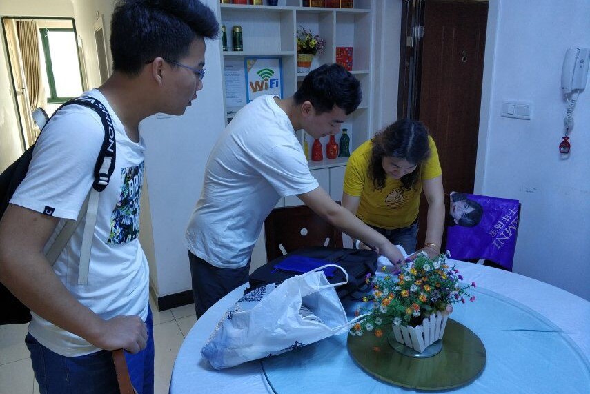 之后团队决定向渔村居民登门拜访,获得了许多热心居民的接纳。在于一位居民的交谈中了解到近年来连云港旅游业有所发展,来往旅客增多,给海边带来了一些生活垃圾,不过环境整体情况较好,团队也向居民发放了调查问卷,居民们认真填写,团队成员与此同时向居民普及各种垃圾的危害以及收容措施,居民们表示会多加留意。
