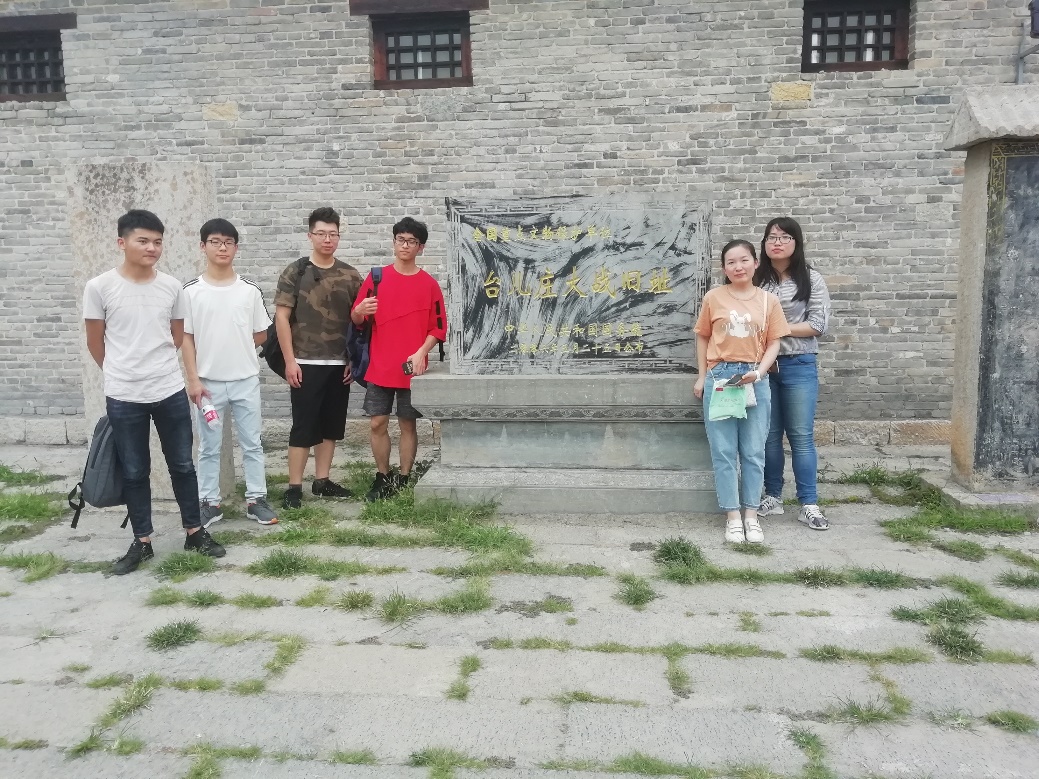 台儿庄大战遗址公园分若干个区:在大战遗址区,将完好保存弹孔墙和部分断垣残壁,再现当年战争场景;在雕塑区,以高度概括的艺术手法,集中再现当年的悲壮场面;同时,建立台儿庄大战日记纪念馆,搜集中日参战军人在大战期间写的日记,表现我军将士视死如归的英勇精神和侵略战争制造的灾难,让游客亲身体验战争的残酷。另外在台儿庄历史文化博物馆和关帝庙散发着浓重的红色文化和革命气息,又增重了一分历史责任感。之后实践团参观了船形街,又称非物质文化博览园,园中有个巨型的船型,长110米,中间宽60米,四周环水,形似扬帆起航的巨船,寓意“大河行舟,一帆风顺”。船形街不仅整体像一艘巨船,而且里里外外还塑造和绘制了许多小船。中间这艘船,是乾隆皇帝的龙舟形貌。船上有供演出的后乐亭,现在正演出的柳琴戏,是当地的乡土剧种。最后一行人参观了一个传统私塾“泰山堂”,近距离地接触私塾文化,对传统文化的敬畏又增加了一分。
