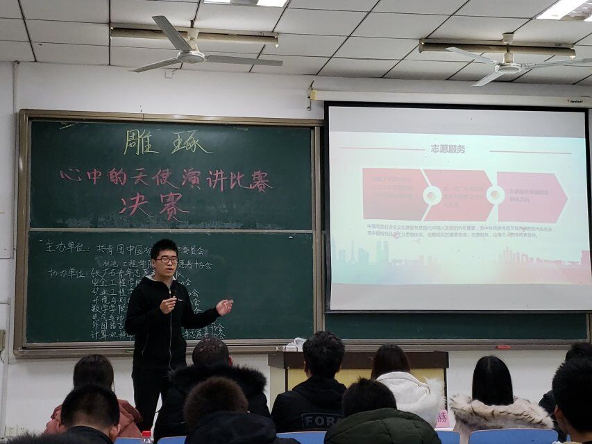 所有演讲结束后,主持人又问了几个关于矿大的小问题作为最后获得加分的机会,所有人都积极参与,大胆回答,将此次活动的气氛推向了顶峰。最后,机电青协主席郝靖对活动进行了总结,鼓励更多学生大胆参与演讲,积极参加公益活动,持续近半个月的“雕琢心中的天使”在一片掌声中落下了帷幕。