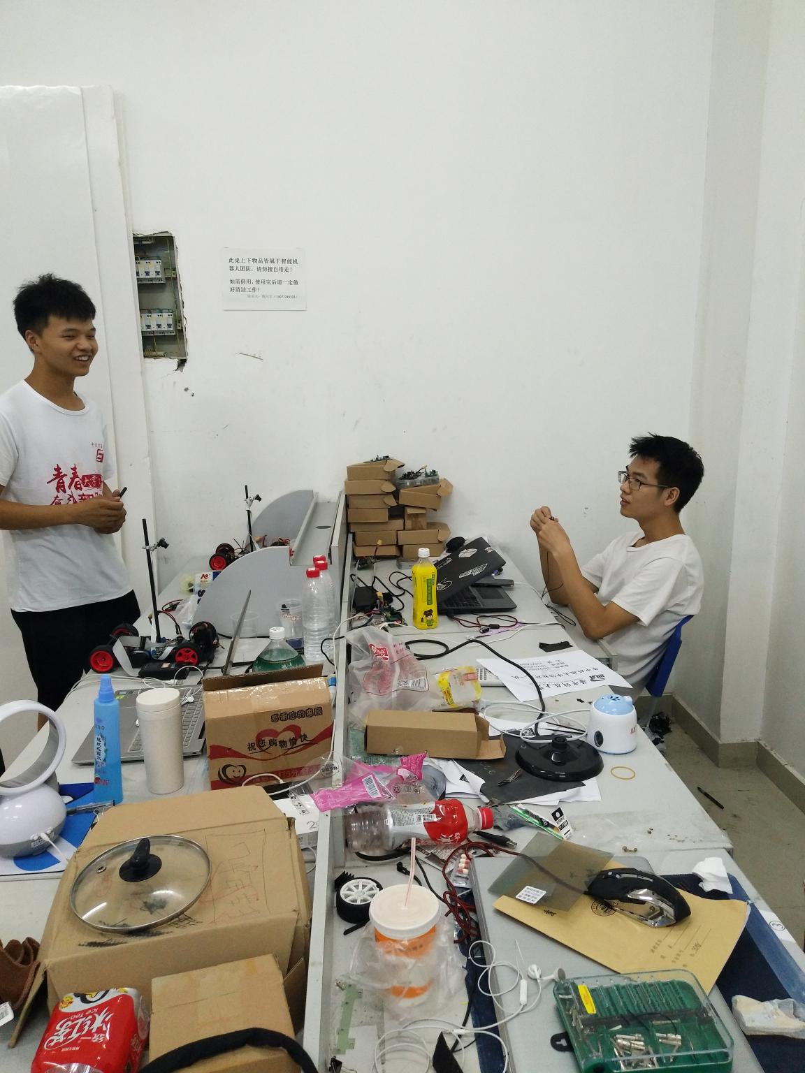 队员们来到恩智浦智能车实验室,同实验室刘队长及其组员进行了密切的交流。我们了解到实验室组员平常在备赛过程阶段很少离开实验室,在实验室角落摆放着许多顶帐篷,实验室就是他们的第二个宿舍。刘队长说备赛过程很辛苦,但他们组员都有极大的热情去备赛,这和他们一开始招新的严厉考核及团队文化是分不开的,同时实验室对不强调传承,而是强调创新,反对照搬以前的优秀成果。