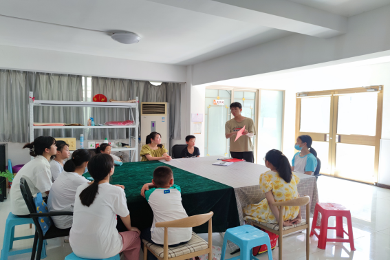 剪纸开始后,实践团成员穿插坐在小朋友中间,对他们进行照顾和指导,以防他们使用剪刀时出现受伤事故。孩子们对实践团成员展示的剪纸充满了好奇,互相讨论剪纸图案的意义,并且向实践团成员求证自己的猜想是否正确,于是实践团成员向孩子们介绍了剪纸图案的历史背景。