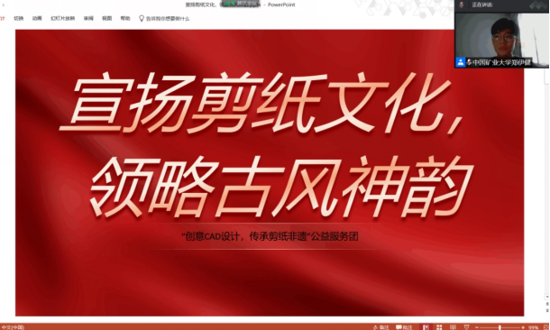实践活动前期,团队成员收集了剪纸文化相关资料,以徐州老东门作为宣讲剪纸非遗主题的地址。为保证实践活动的顺利进行,团队成员郑伊健联系了龙田镇南山社区,确定了以线上的方式向社区人员宣扬剪纸文化,讲述徐州老东门CAD创作及其红色意义。在实践活动中,实践成员首先向社区人员讲述了剪纸的意义、中国剪纸历史,紧接着介绍了徐州老东门的红色背景,最后演示了如何使用CAD完成剪纸创作。