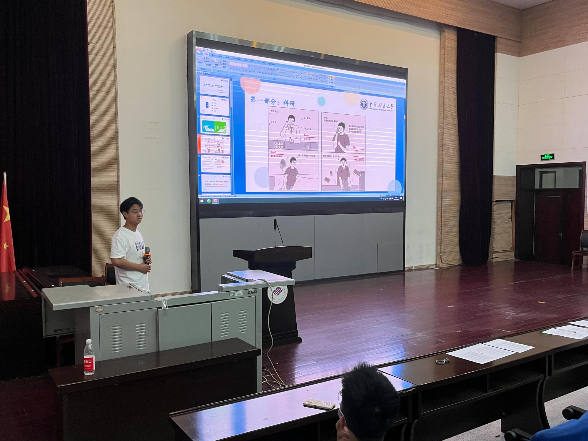 徐振阳同学从最初的梦想、追梦以及曾经的道路等方面,详细介绍了自己的申请海外全奖博士经历。他结合本科经历讲述了自身申博想法的萌生过程,并分享了对英语学习、申博信息收集、择校选择的心得,结合自身理解对“如何寻找海外导师、如何准备学术论文”进行了充分交流,勉励研一同学要认真学习专业知识,在科研过程中要细致认真,培养自身创新能力,充分发挥主观能动性,做到全面发展。