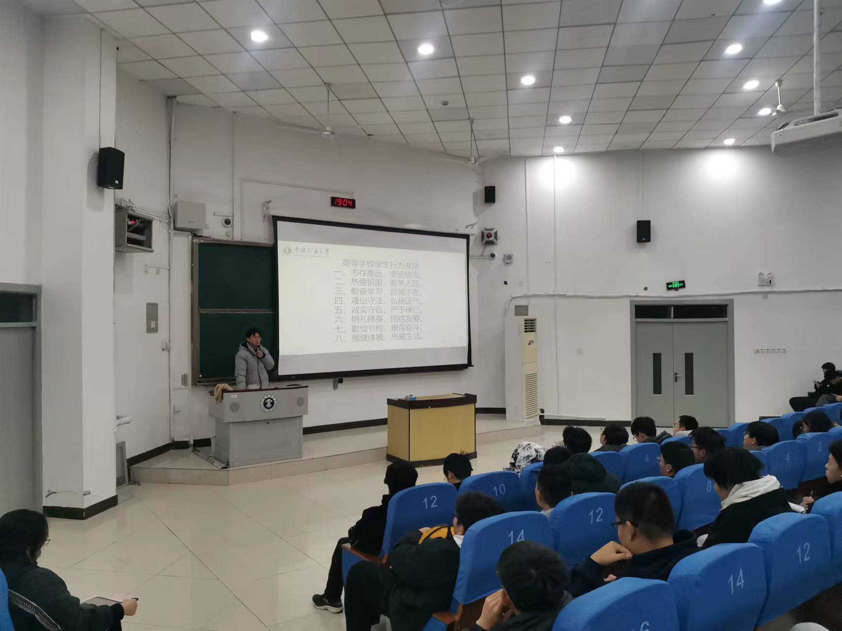 为做好寒假离校安全管理工作,树立学生诚信考试意识,2024年1月2日,无码动漫 于博二楼C102召开了学期末年级大会。会议由2023级本科辅导员汪凯主持,2023级全体新生参加。