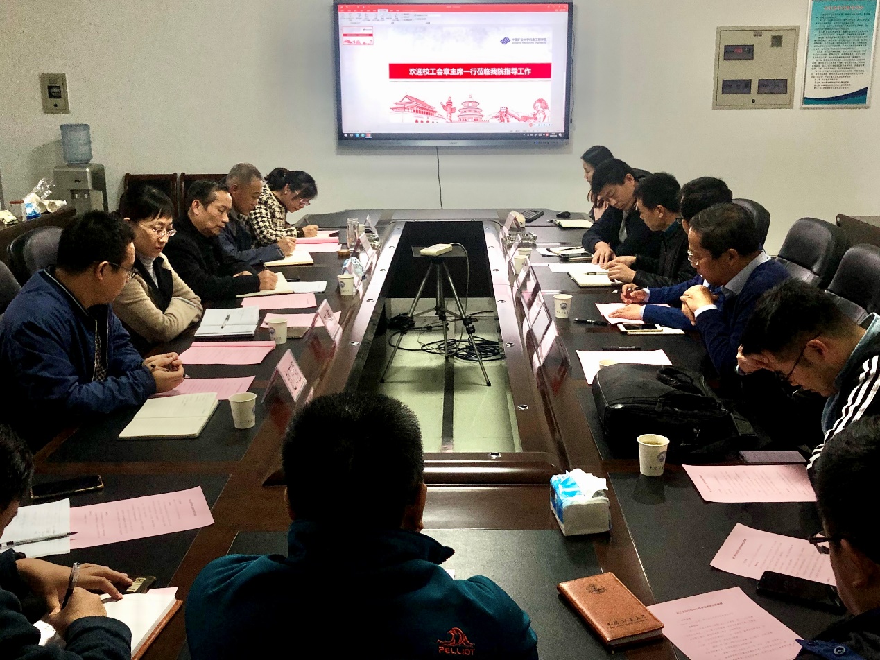 11月5日下午,校工会主席章毛平、副主席郭鹏、王蕾等一行五人莅临无码动漫 调研指导工会工作。无码动漫 党委书记吴松、副院长胡卫新、党委副书记王虎、院工会主席洪从华及各工会小组长、相关科室负责人参加了座谈会。座谈会在机电楼A501会议室举行。