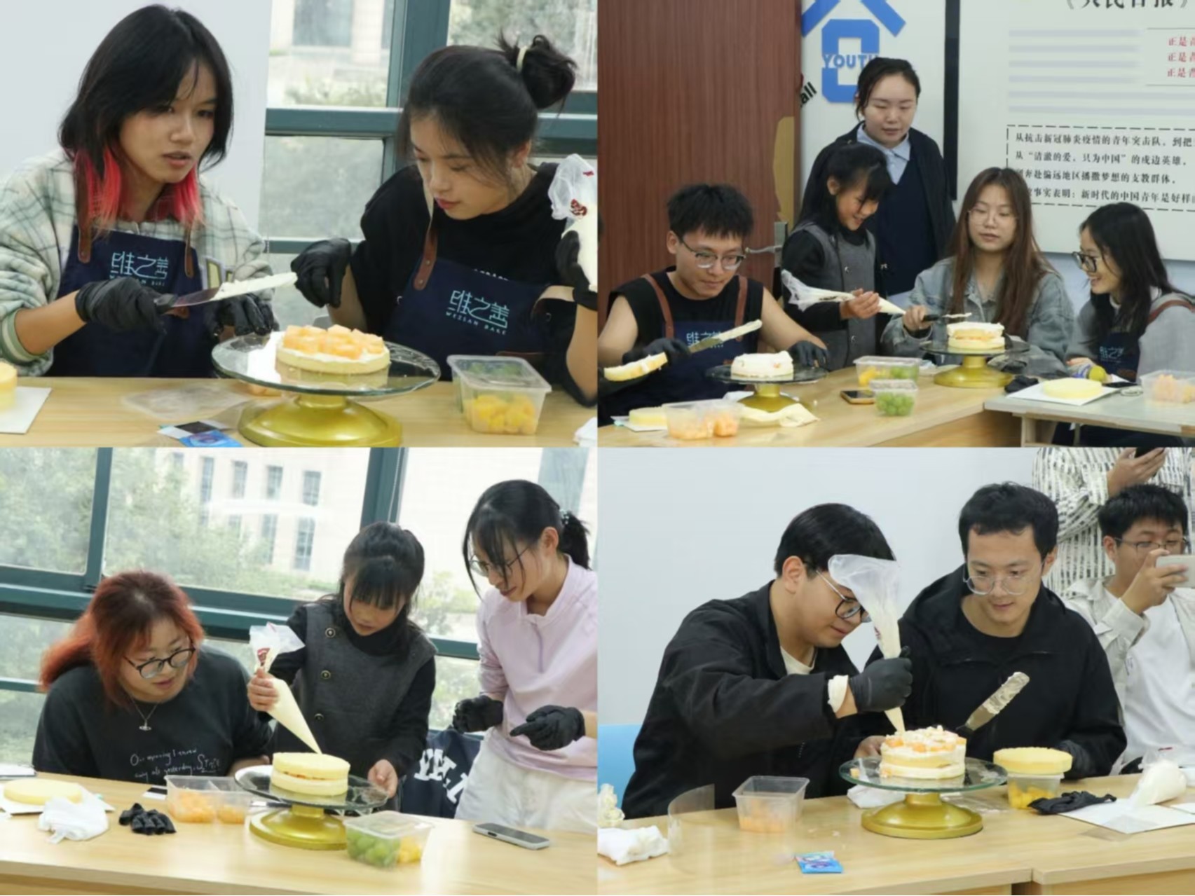 为了丰富学生课余生活,缓解学业压力,增进同学间的交流协作,学院于2025年10月18日下午在桃二C418举办了蛋糕DIY活动,主题为“秋阳慢焙,把温暖裹进奶油里”。来自各年级的40名的学生踊跃参与,在互动中体验手工创作的乐趣。