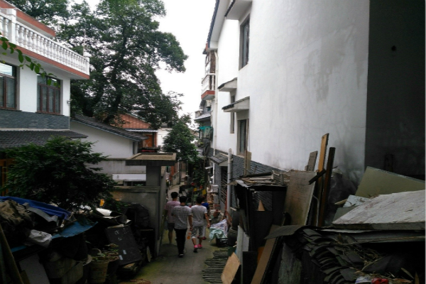 听了这一番话,实践团成员们瞬间有了一种“听君一席话,胜读十年书”的感觉。于是,实践团的成员们不再停留,马不停蹄地向狮峰山上赶去。顺着盘山公路一直向上走去,慢慢的可以看到一片古代风格的建筑,就像教科书上描述的江南建筑风格一样。
