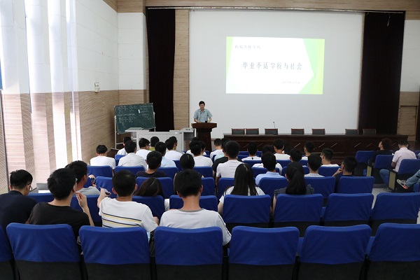 院党委书记赵继云以“毕业季话学校与社会”为主题为毕业生党员上展开讲解。首先赵书记对毕业生党员在校期间取得的优异业绩与良好表现给予充分肯定和赞扬,并列举多位优秀学生,多个优秀班级,以及得到的奖项,他表示我们60名党员55名得到奖学金,这是我们党员学生的荣誉。随后,他对即将走出学校,步入社会的毕业生党员讲到“我感觉一个人的一生把三件事做好就可以了,第一孝顺父母,第二养育子女,守卫自己的家庭,第三则是帮助他人”。接着他表示我们党员要有“人人为我,我为人人”的意识。最后赵书记以古文为训,他讲到“天下难事,必作于易;天下大事,必作于细”“天行健,君子以自强不息”,他让在座党员记住这两句话,这样才能在这社会上立足。