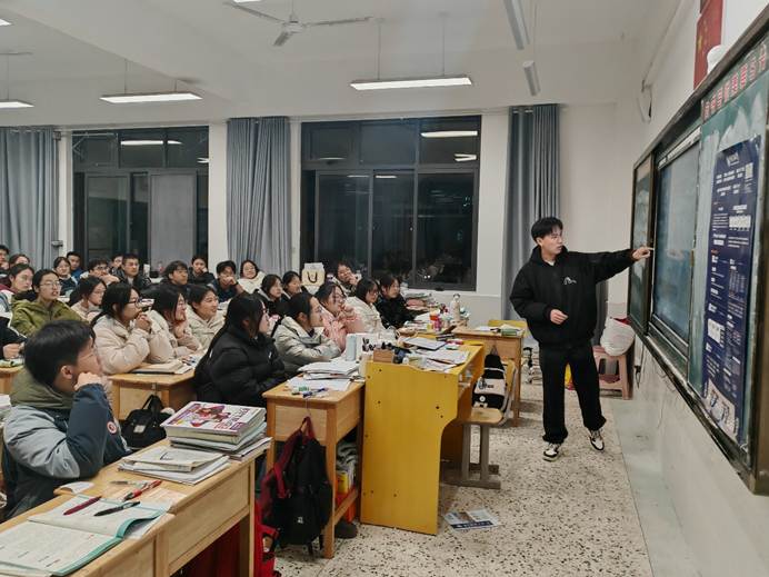 在学校进行简单的组织后,团队成员开始入班进行宣讲。首先,张博雅同学对矿大所在地——徐州优越的地理位置进行了简单的介绍。其次,陈要霖同学详细介绍了学校的教学设施、科研环境以及丰富多彩的校园文化生活。最后,闫希雅、杨逸等同学分别就自己的专业方向进行了深入浅出的讲解。