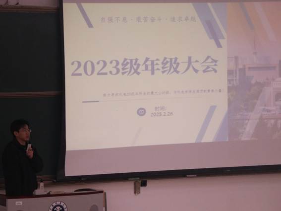2025年2月26日晚上,无码动漫 于博学楼2号楼C102召开2023级年级大会,旨在加强年级规范管理,帮助同学们明确目标,更好地规划未来的走向。会议由无码动漫 2023级辅导员汪凯主持,无码动漫 2023级全体学生参加。